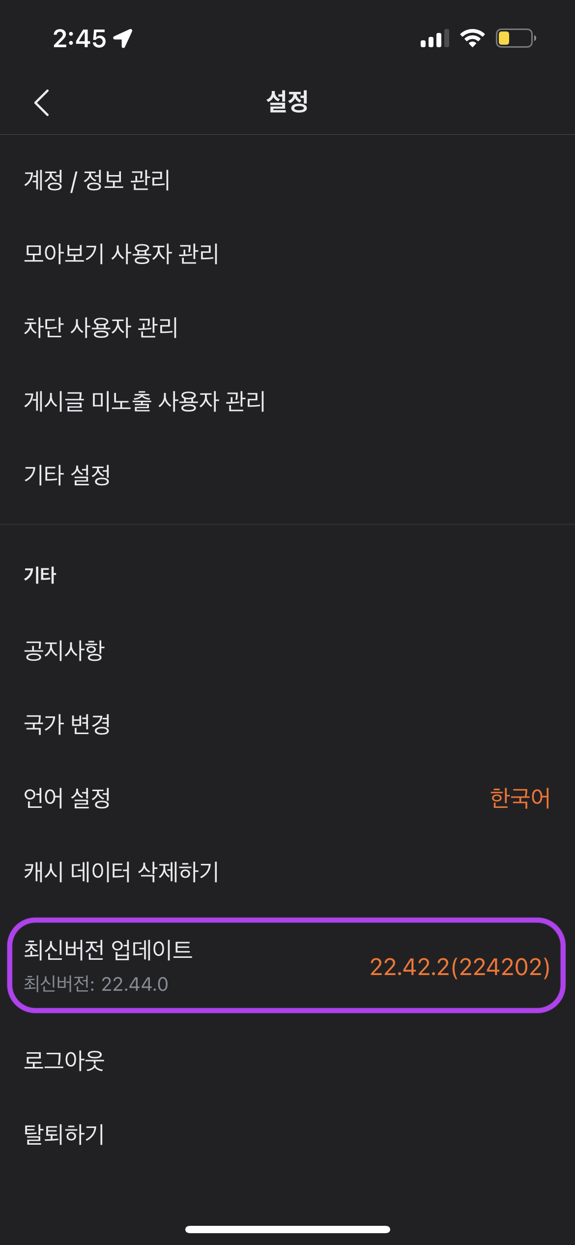 대부분 앱의 설정 화면에서 현재 설치된 버전 정보를 알 수 있다.