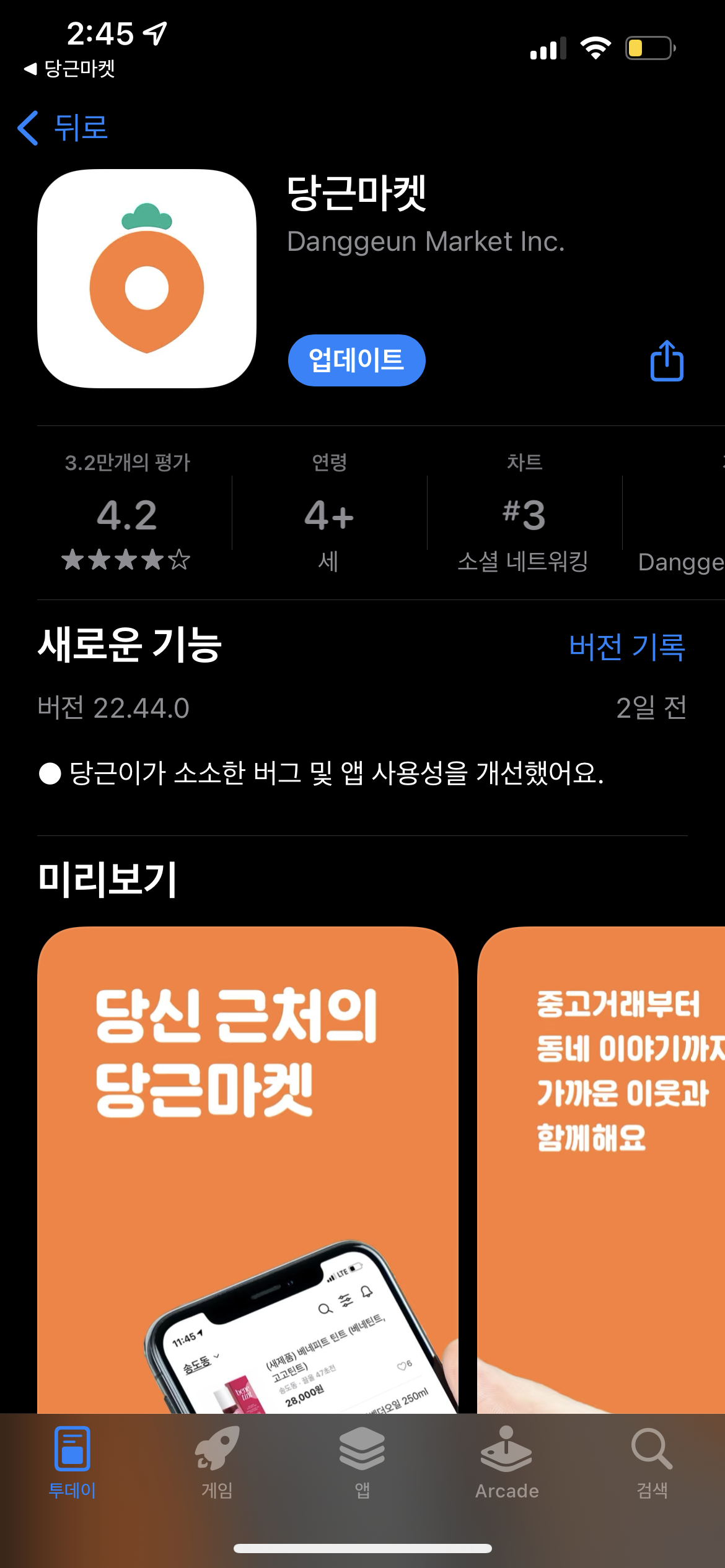 그리고 해당 앱의 최신버전이 나왔다면 업데이트 버튼을 탭했을 때, 사용자에게 AppStore 화면을 띄워준다.