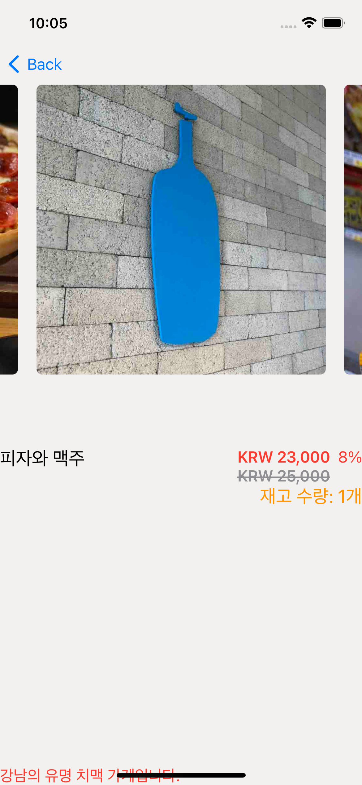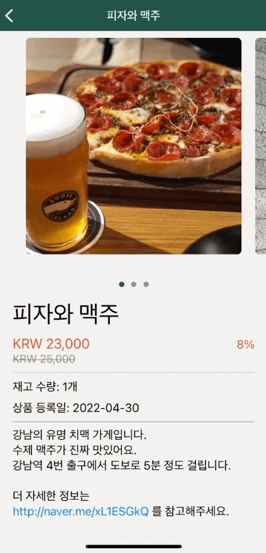 화면-2 : 사용자가 배너 또는 목록의 상품을 탭하면, 해당 상품의 상세 화면을 띄운다.