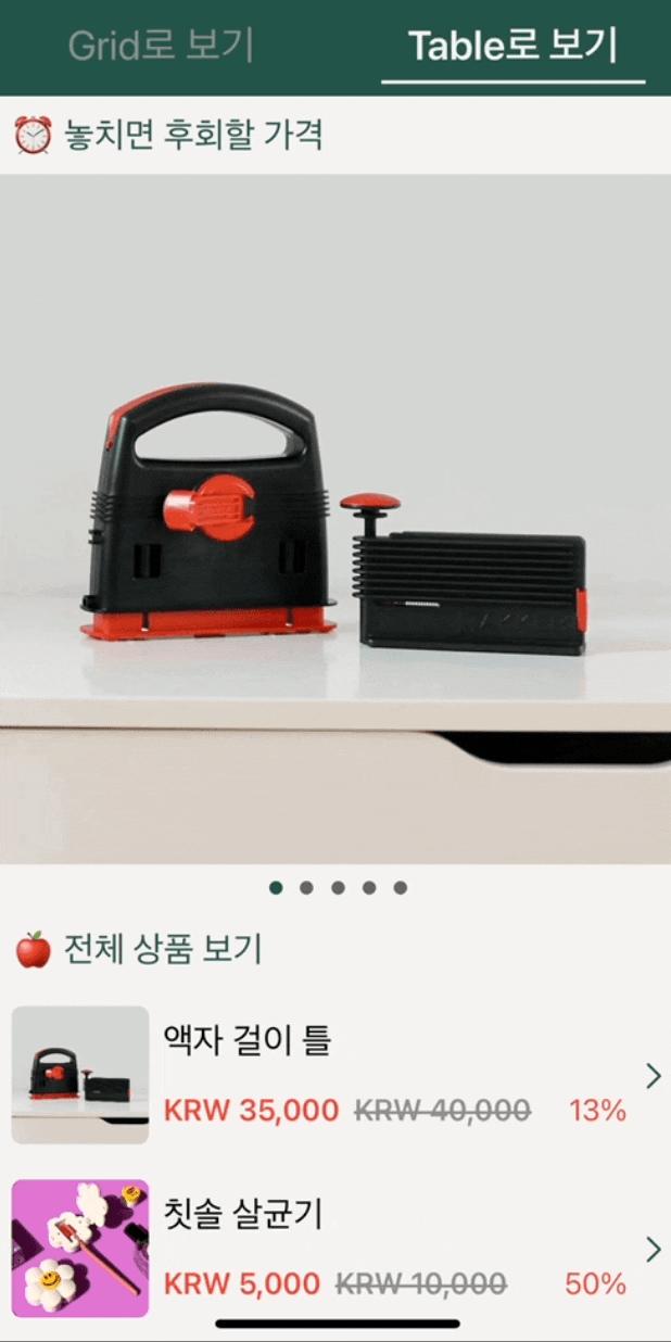 화면을 보면 위의 banner section은 horizontal scroll을, 아래의 list section은 vertical scroll을 할 수 있다.