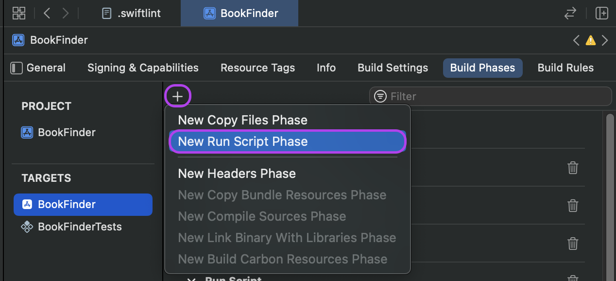 Targets > 프로젝트 폴더 > 상단의 Build Phases > + 버튼 > New Run Script Phase > Run Script에 아래 코드를 복붙하면 된다.