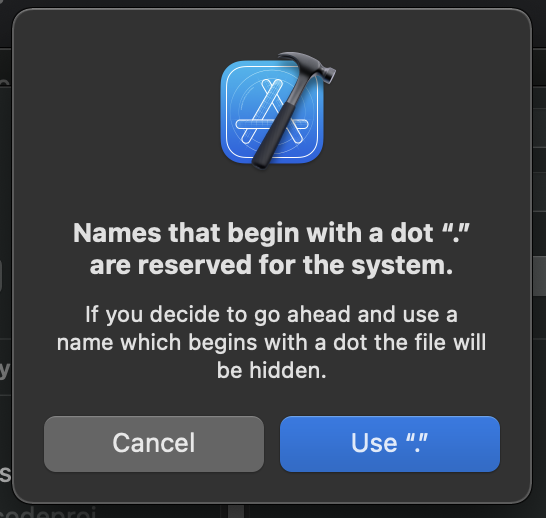 그럼 아래처럼 경고창이 뜨는데, Use "."을 클릭하면 된다.