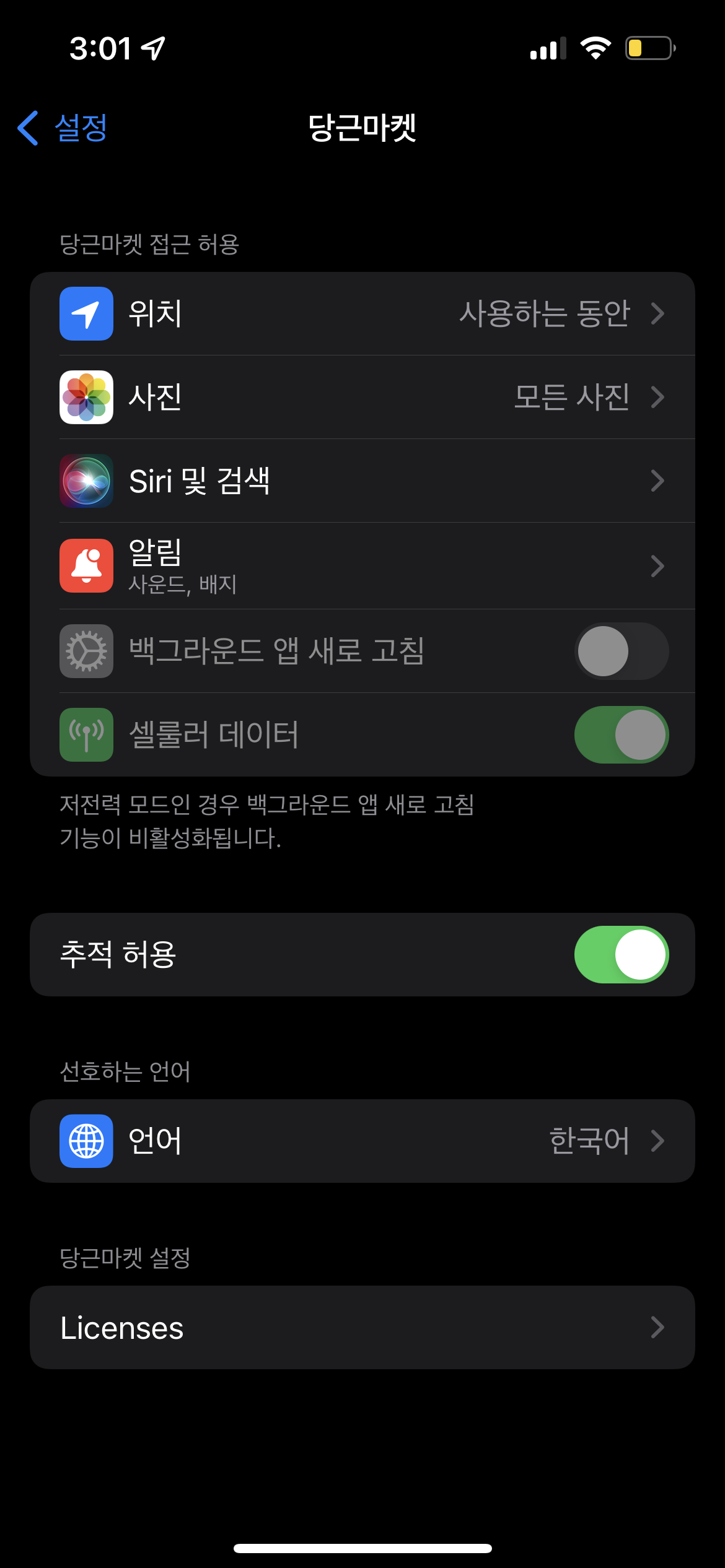 사용자가 Push Notification, 광고 추적 허용 등의 설정값을 변경할 수 있도록 기본 설정 앱 (Settings 앱)을 띄워준다.