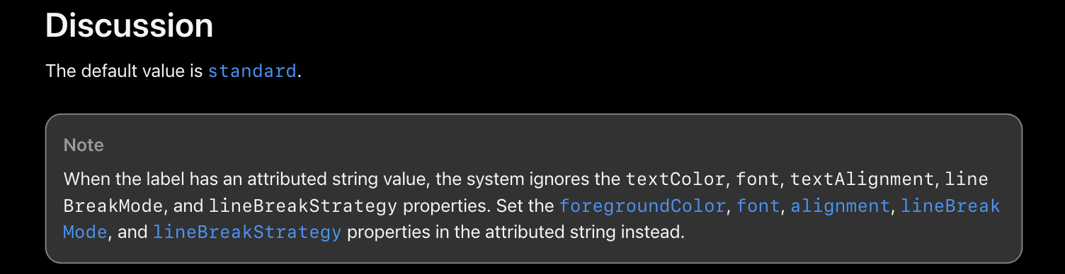 개인적으로 혼동을 막기 위해 attributedString을 사용할 때는 paragraphStyle.lineBreakMode를 사용하도록