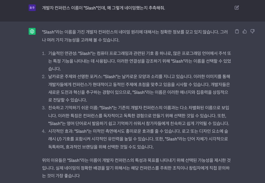 왜 컨퍼런스 이름을 Slash로 네이밍했을까 궁금증이 들어서 ChatGPT한테 물어봤다.