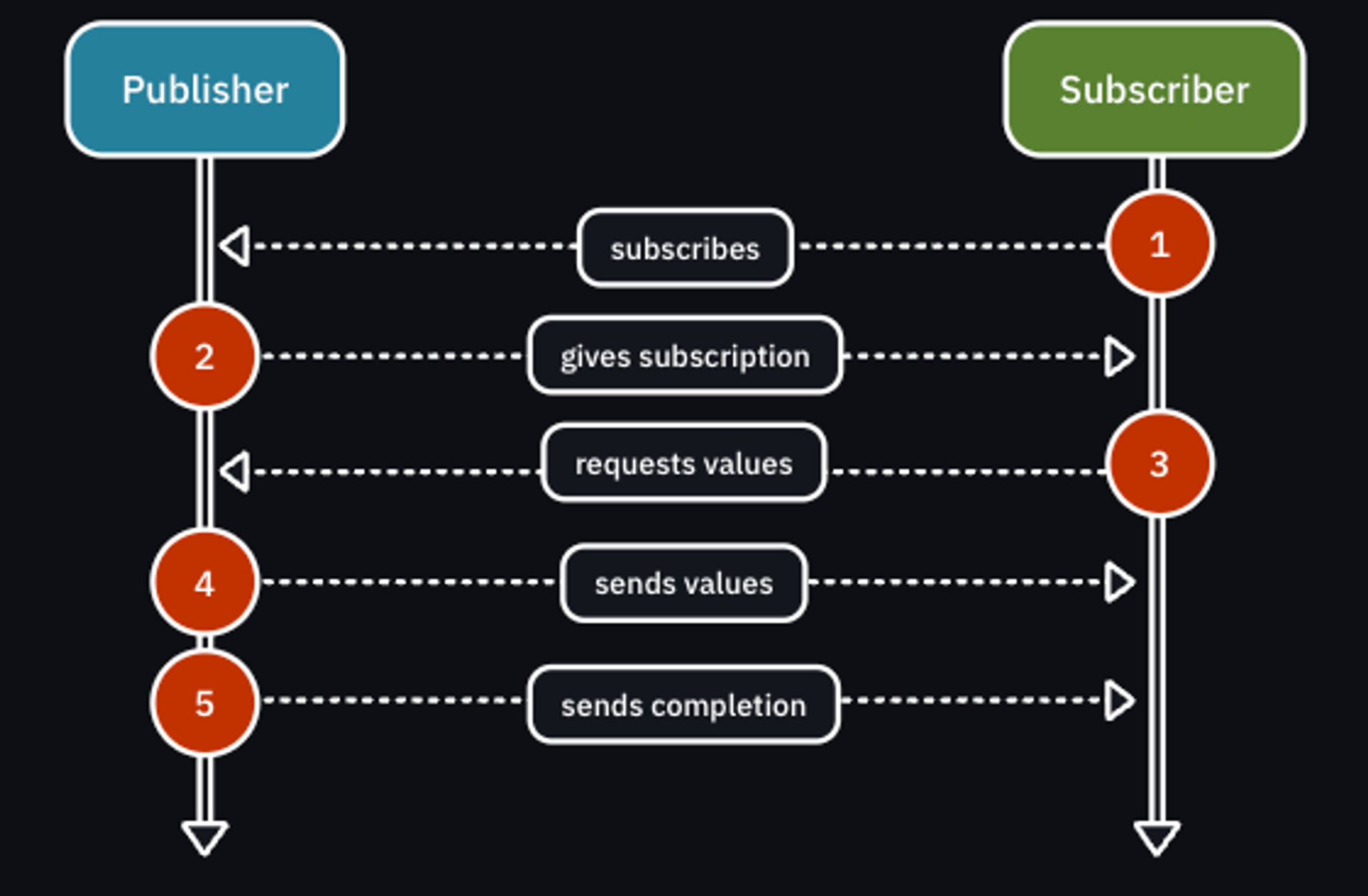 - Subscriber는 Publisher를 구독하기 위해 해당 Publisher의 subscribe 메서드를 호출한다.